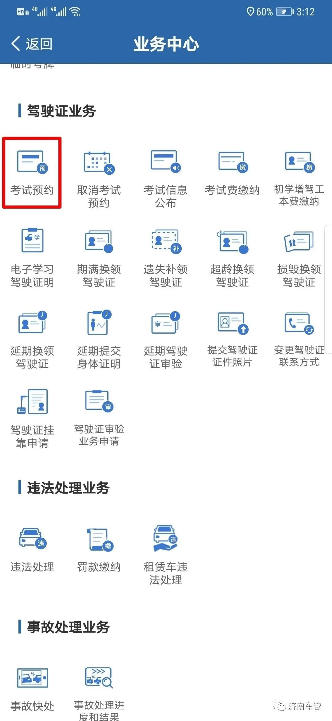 注意:通过变更考试地来济参加考试的,无法自动关联安全文明常识考场,需要自主预约。