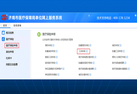 在左侧菜单栏里“医疗保险申报”中选择“工资申报”,完成工资申报。