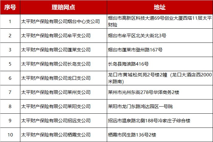 理赔资料及赔款明细咨询专线:0535-6756910(工作日8:30-12:00 13:30-17:30)