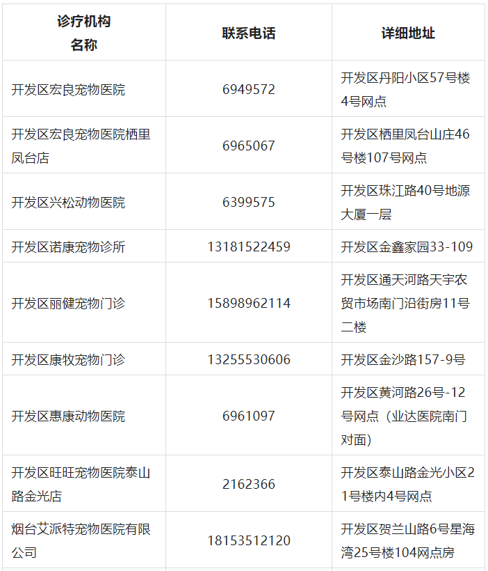 烟台经济技术开发区管理委员会发布了《烟台经济技术开发区关于养犬重点管理区和一般管理区的通告》,明确开发区的一般管理范围为:古现街道辖区的东龙夼村、陈家沟村、东吴家村、棘子夼村、石屋营村、百堡村、八角村、小赵家村、泊子村。大季家街道辖区的大季家村、小季家村、芦洋村、山后初家村。潮水镇辖区。重点管理区范围为:福莱山街道辖区和古现街道、大季家街道未被列为一般管理区的区域。