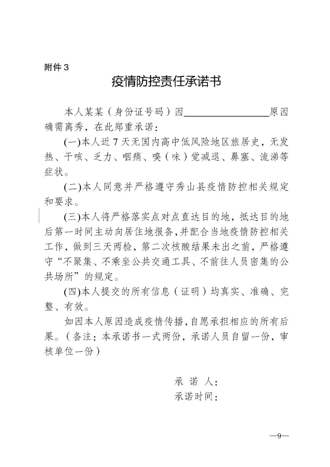 (5)为严防疫情外溢,所有返程人员申请离秀前需征求目的地政府意见并取得同意,严格落实返程目的地疫情防控政策。
