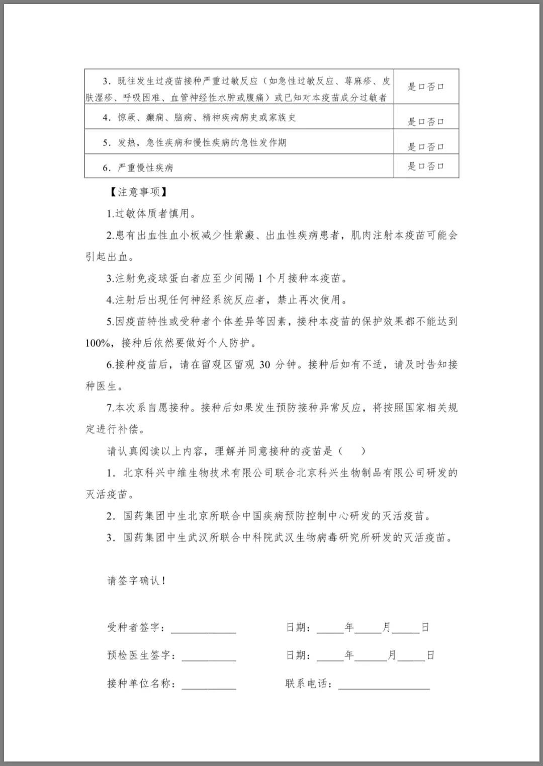 按照知情、自愿、免费的原则,签署新型冠状病毒疫苗接种知情同意书(附件)。