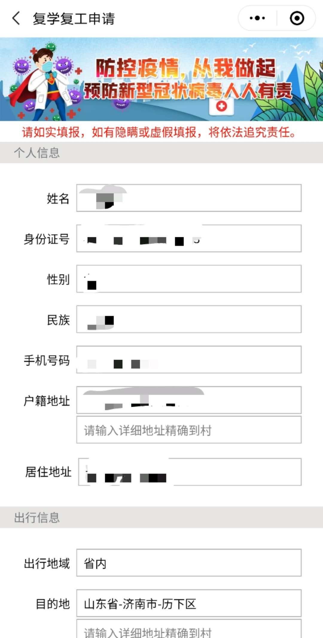 ③进入通行卡申请界面,如实填写相关信息,然后提交