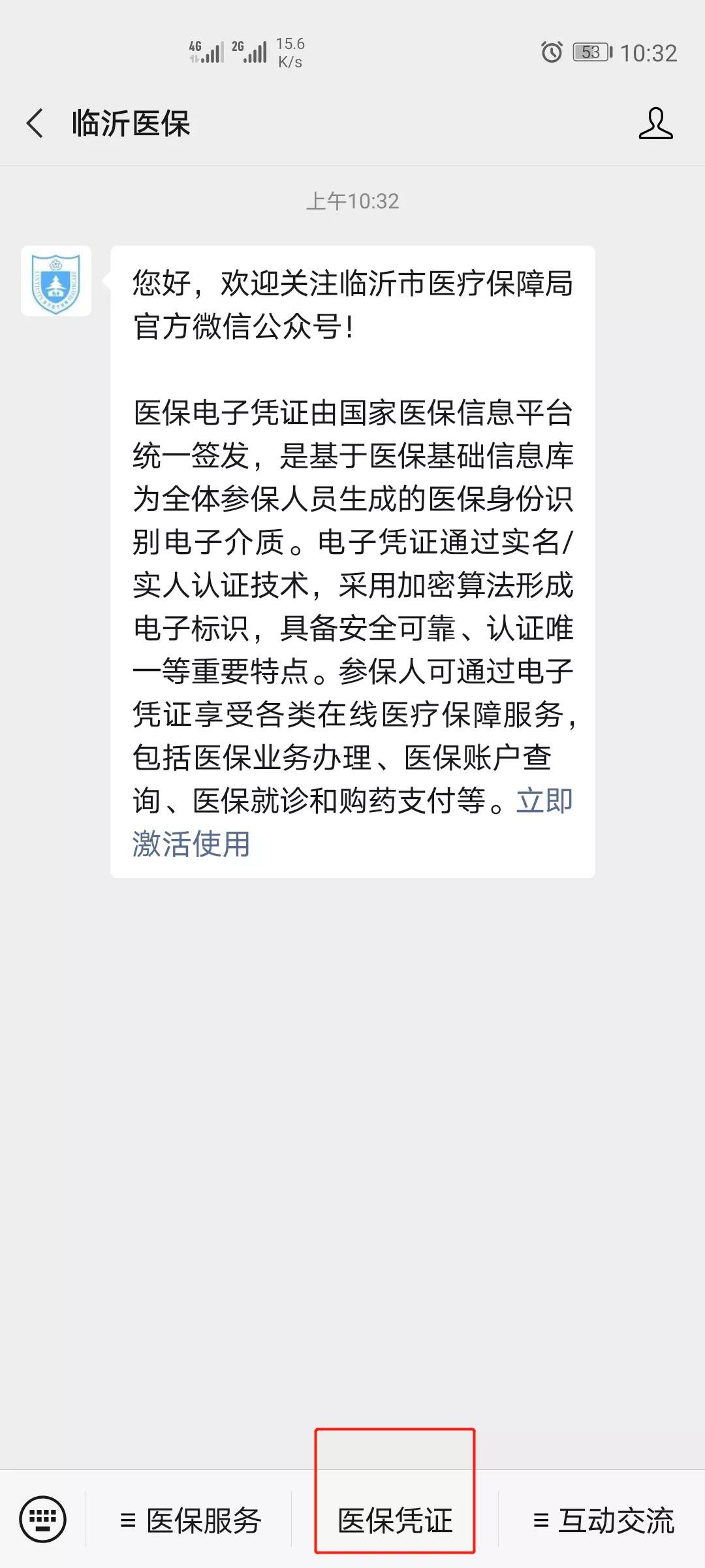 使用流程:搜索并关注“临沂医保”微信公众号,点击下方“医保凭证”-立即激活-输入微信支付密码-授权激活-人脸识别-激活成功。