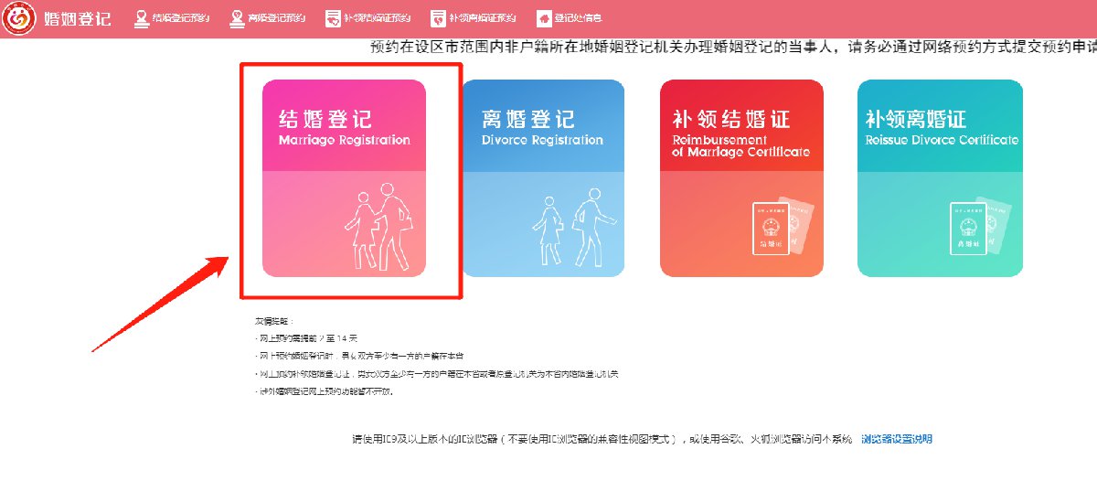 第六步:进入预约界面,点击“结婚登记”