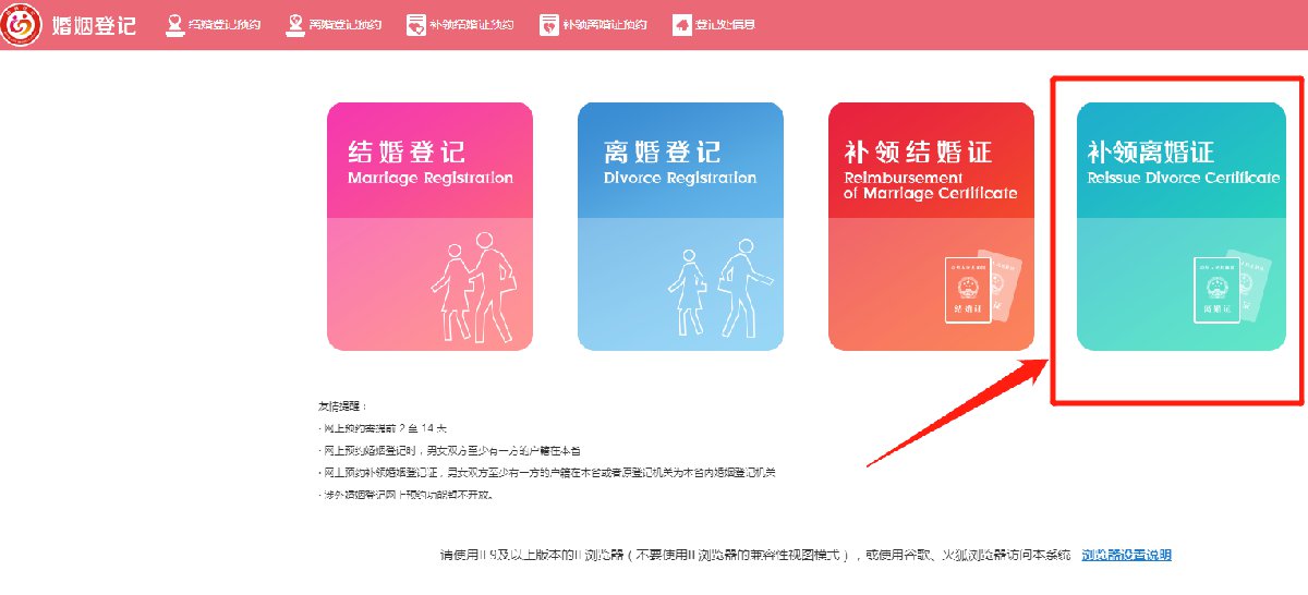 第六步:进入婚姻登记页面,点击“补领离婚证”