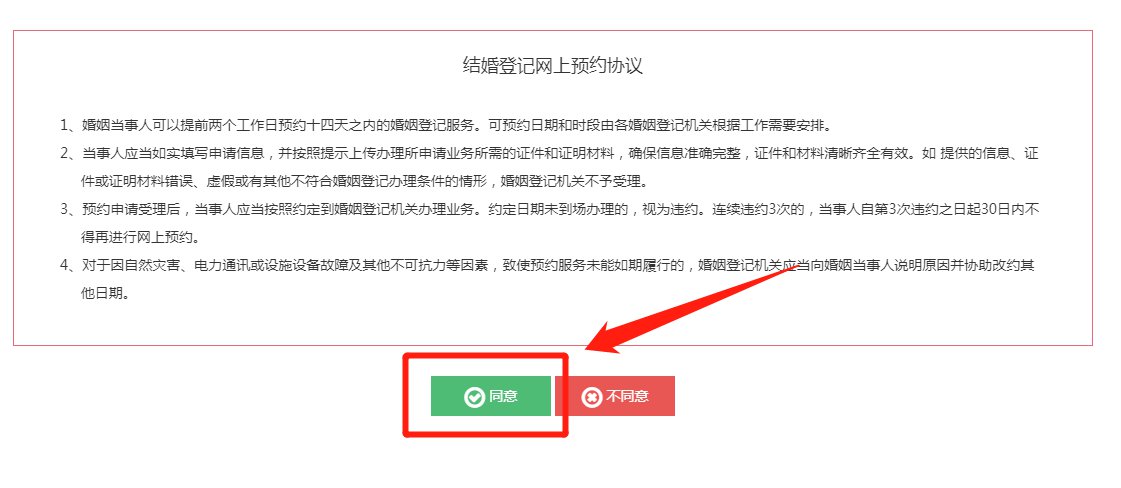 第八步:阅读结婚登记网上预约协议,并点击“同意”