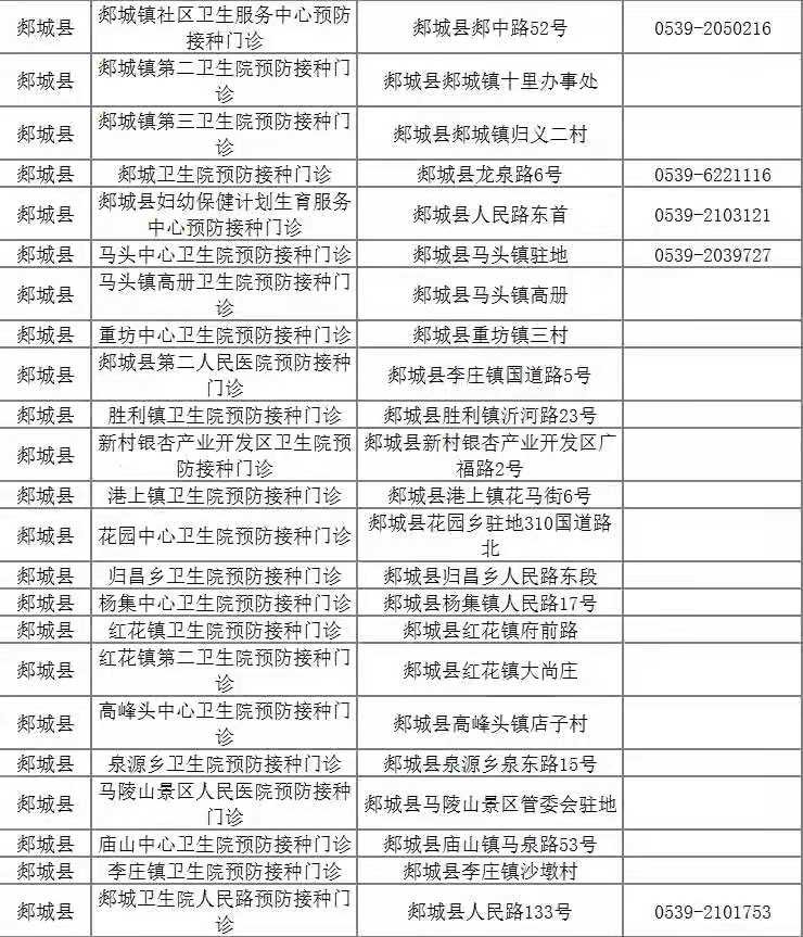 一、临沂市郯城县疫苗接种地点及电话