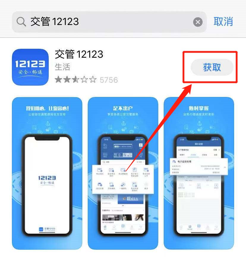 第一步:打开手机应用商城,搜索并下载“交管12123”APP