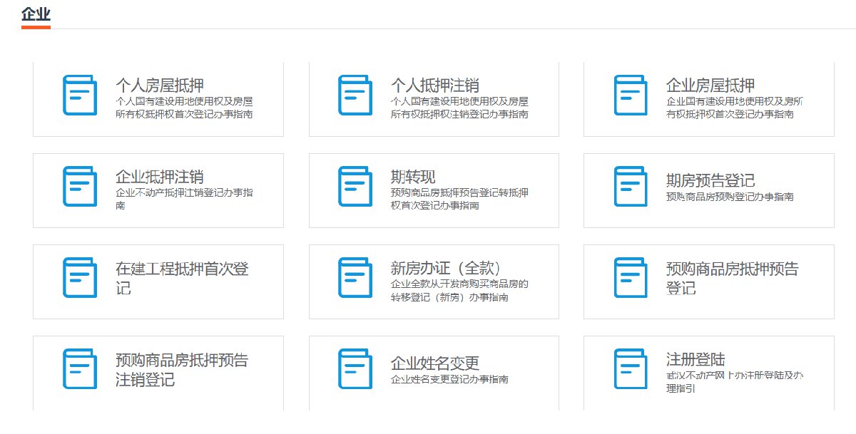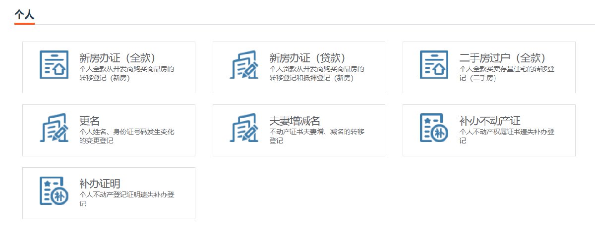 目前已推出10个个人事项,13个企业事项和10个查询事项,包括新房办证、补办不动产证、企业房屋抵押、期房预告登记、在建工程抵押首次登记、个人名下不动产查询等业务。