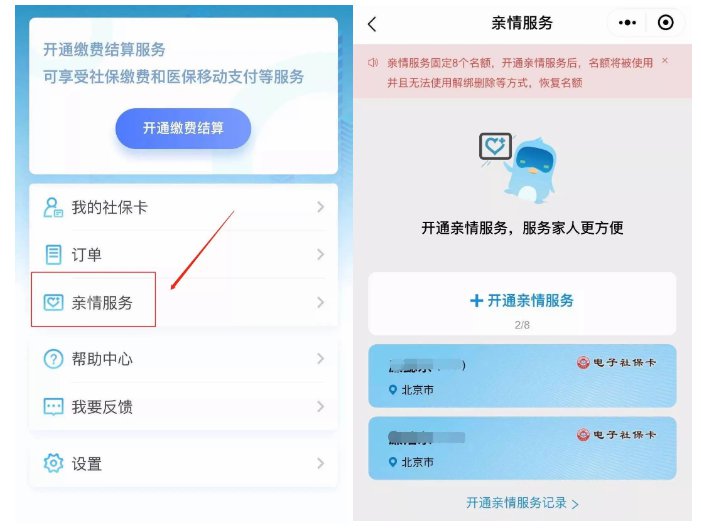 第一步:您的儿女可用自己的电子社保卡,在“我的”找到“亲情服务”功能,绑定您的电子社保卡。