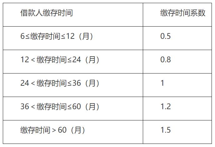 (4)已参缴住房公积金6个月及以上的职工,按实际汇缴(不含一次性补缴)月数计算缴存时间,确定对应缴存时间系数及贷款额度。
