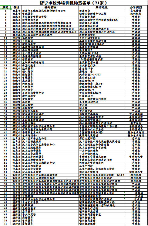 济宁市2415家白名单培训机构、71家黑名单培训机构一览表