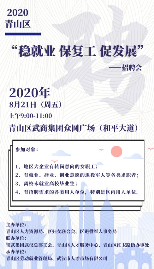 一、武汉市青山区“稳就业 保复工 促发展”招聘会