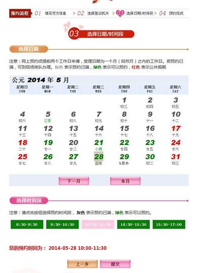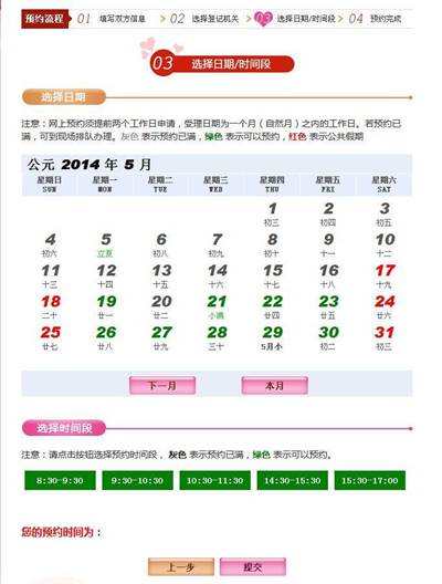 · 网上预约需提前 2 至 30 天· 网上预约婚姻登记时,男女双方至少有一方的户籍在本省