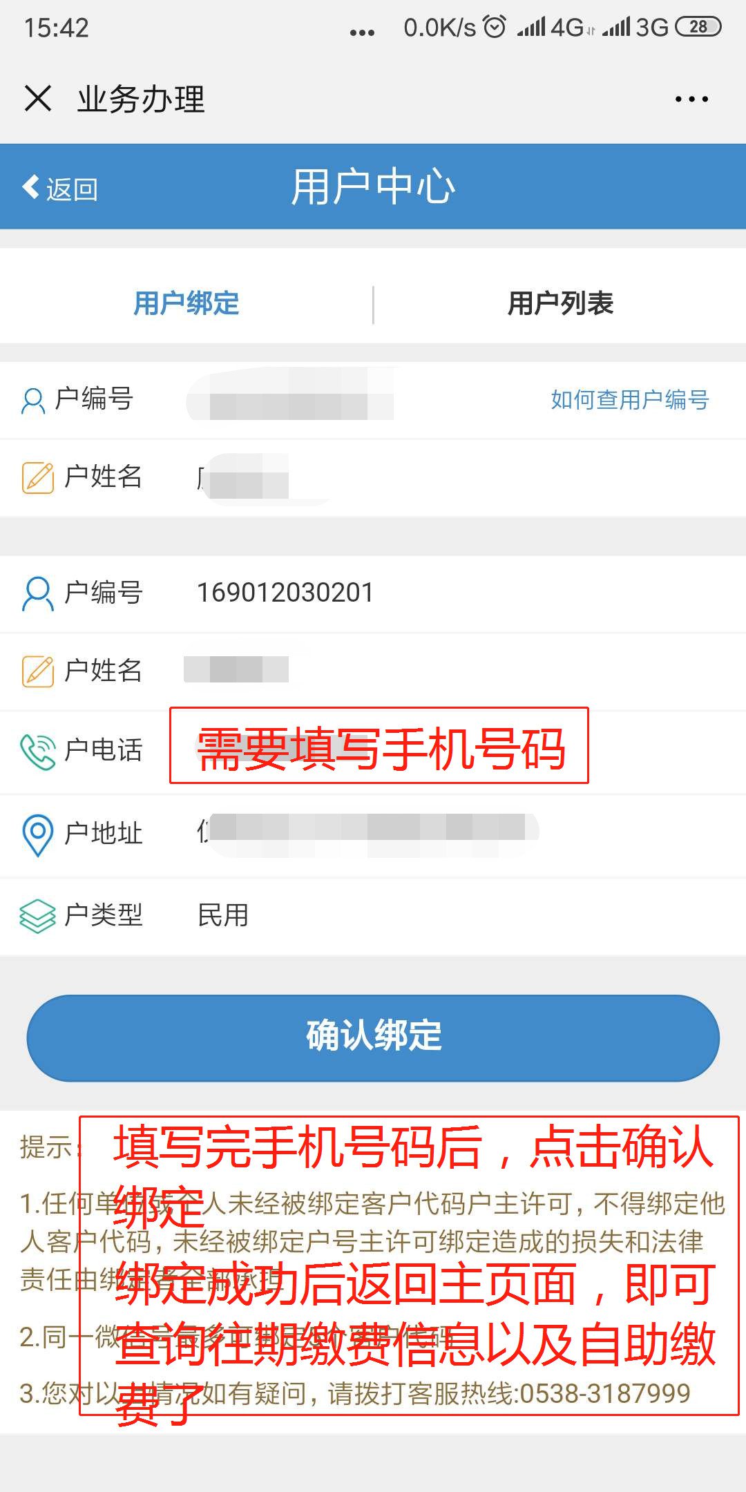 3)用户编号可拨打3187999获取,或通过往期在营业厅缴费小票查看。