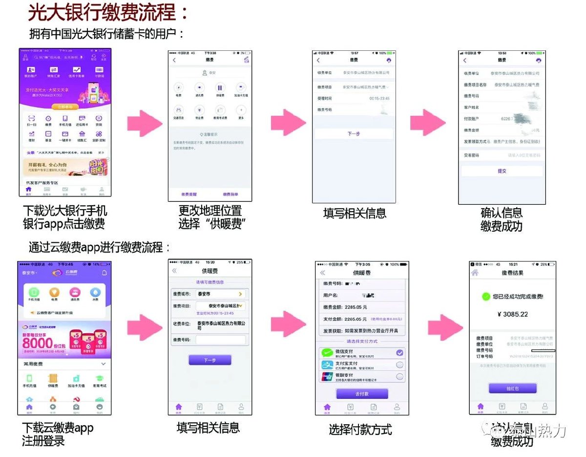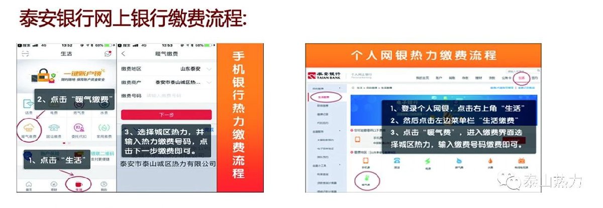 热用户可到泰安银行任意网点缴纳热费。