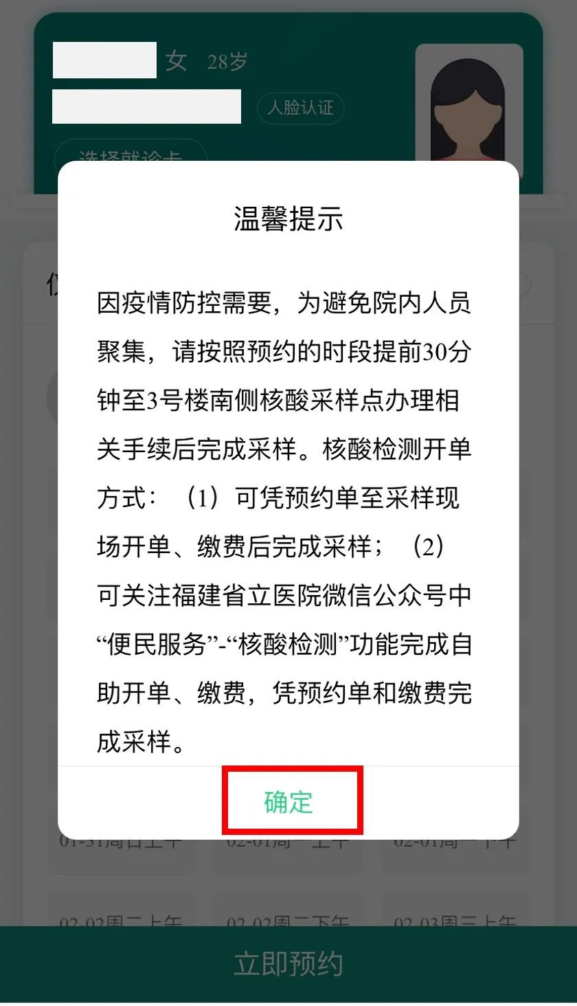 选择预约时段(请您尽量提前一天预约)。