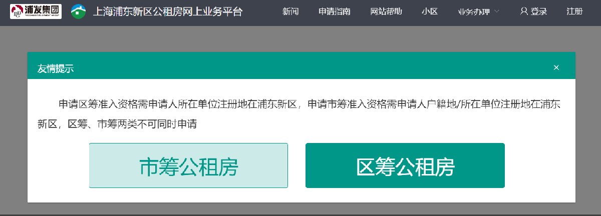 1、进入申请入口后,选择“市筹公租房”或“区筹公租房”;