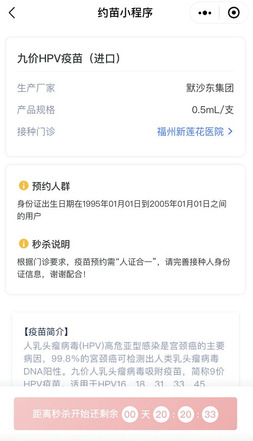 进入预约界面后,首选确认定位地址是否为福州,如果不是要手动改为福州哦,然后点击九价或四价秒杀活动。
