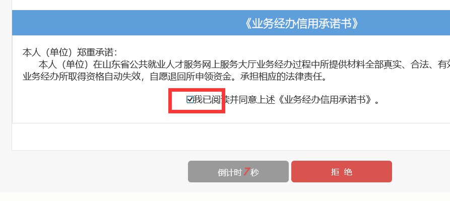 4.阅读《业务经办信用承诺书》,选中“阅读并同意。”等待十秒后点击接受进入:
