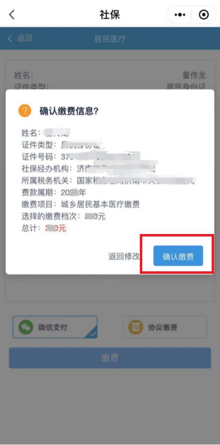 第四步:选择缴费档次后,然后点击“缴费”,再次检查信息是否正确,确认缴费;