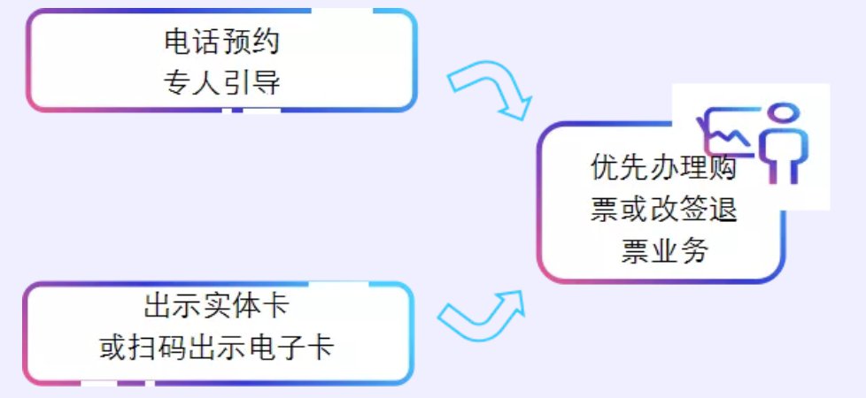 当然,作为咱们的“王者卡”持卡专家,铁路部门也为您提供了更加周到的服务!您也可以通过拨打服务电话预约,会有专员为您引导哦!此外,如果您需要办理改退签等人工服务的业务,也能享受优先待遇!