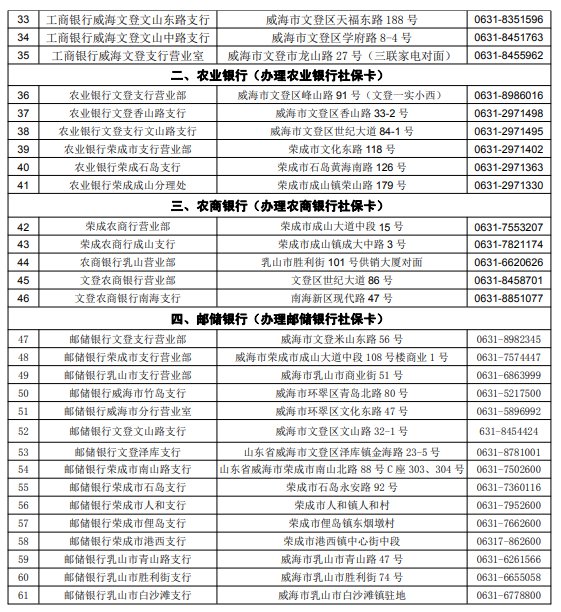 (二)密码重置:市直(威海市胶州路 7 号)及各区市社保经办机构社会保障卡服务窗口、部分社会保障卡合作银行营业服务网点。