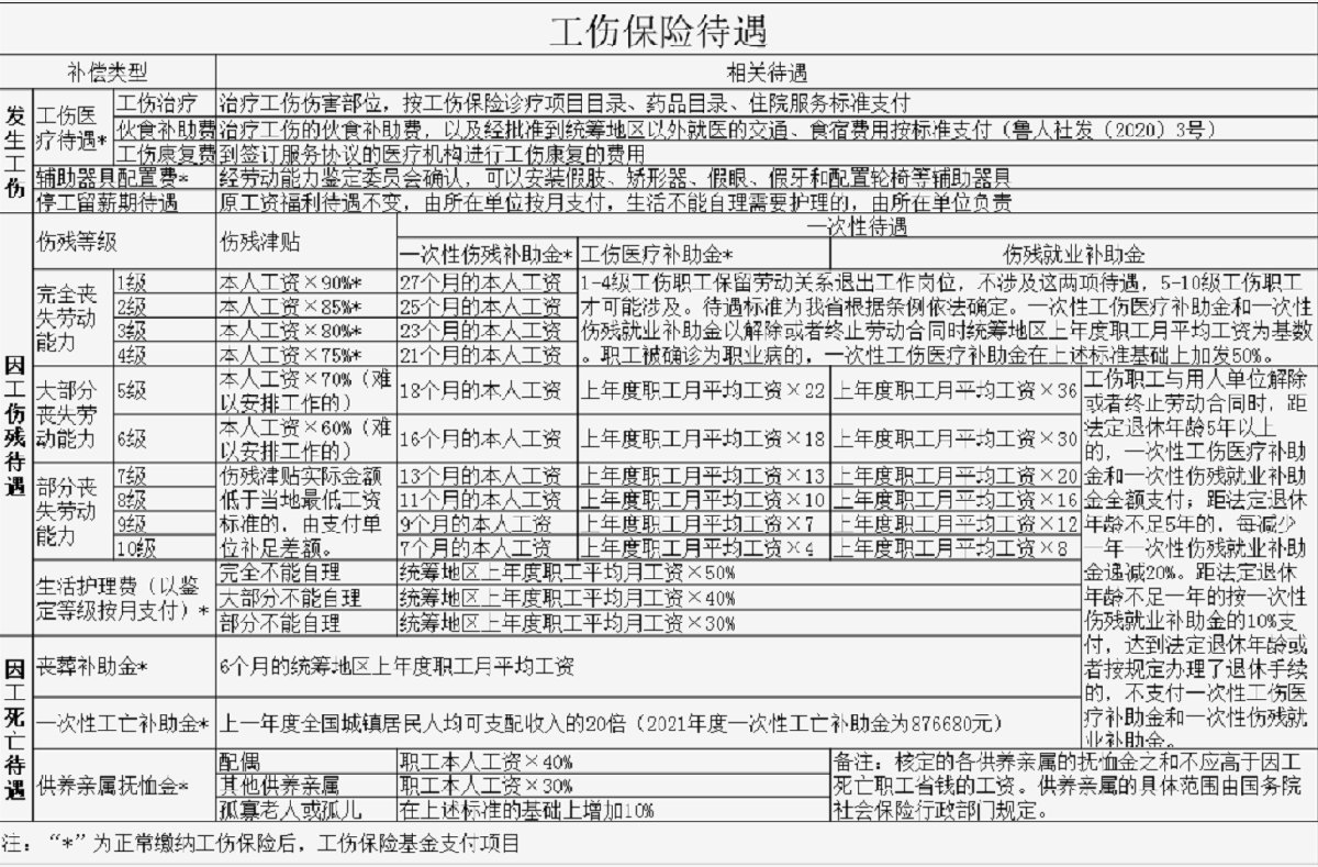 工伤待遇一览表