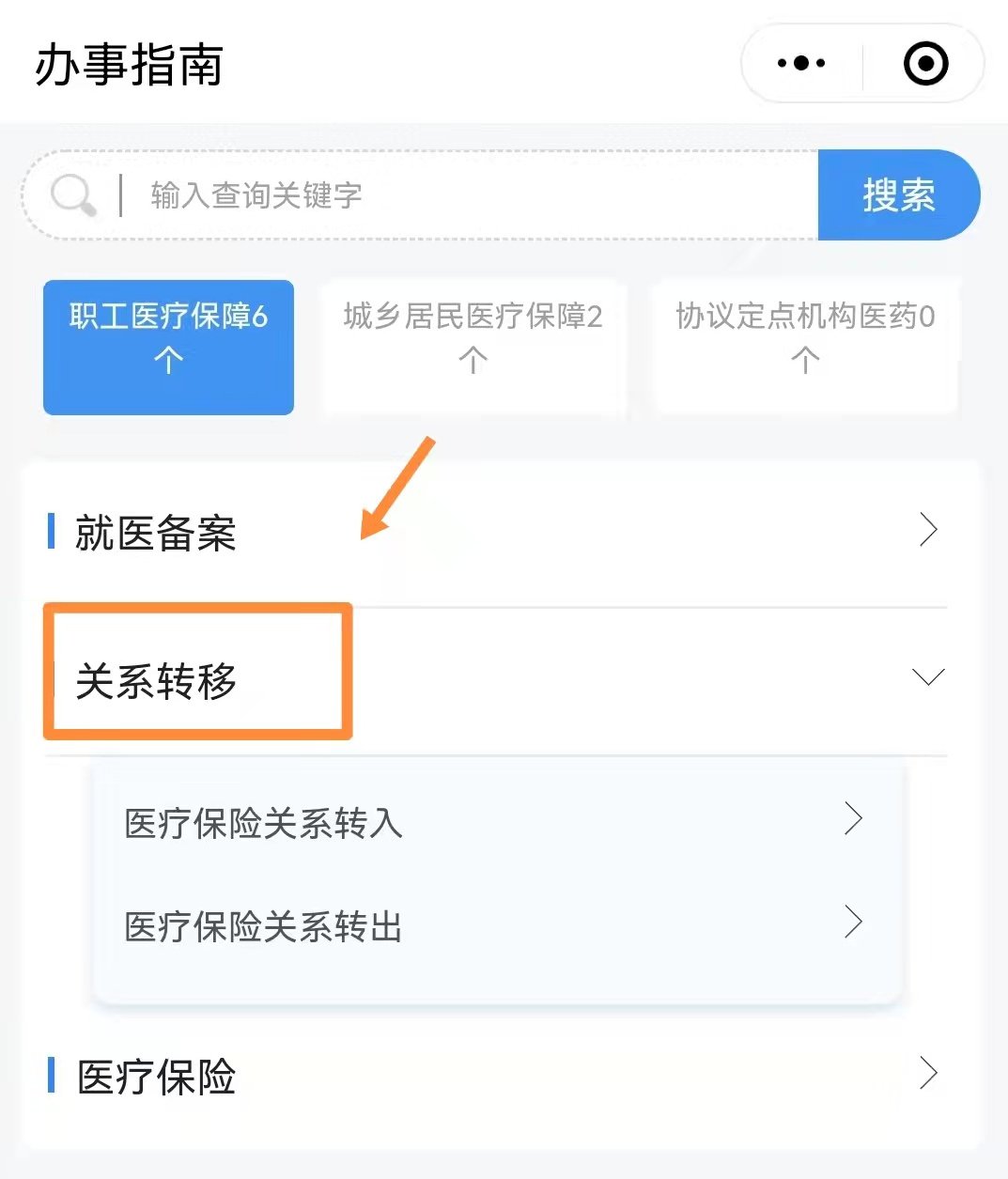 ②选择“关系转移”-“医疗保险转移”