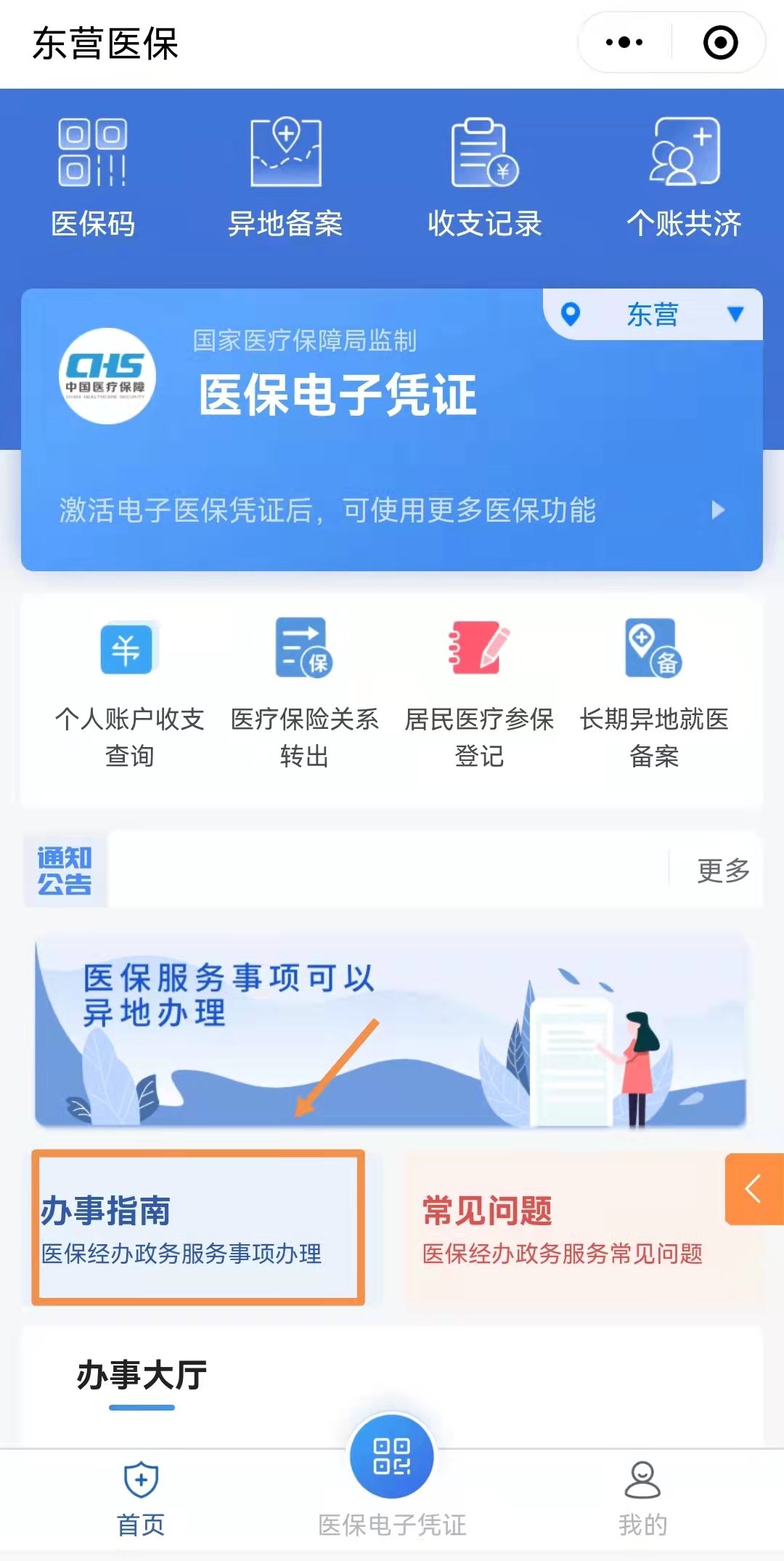 在微信上搜索“东营医保小程序”,点击“办理指南”中的“医疗保险关系转入”即可在线办理。
