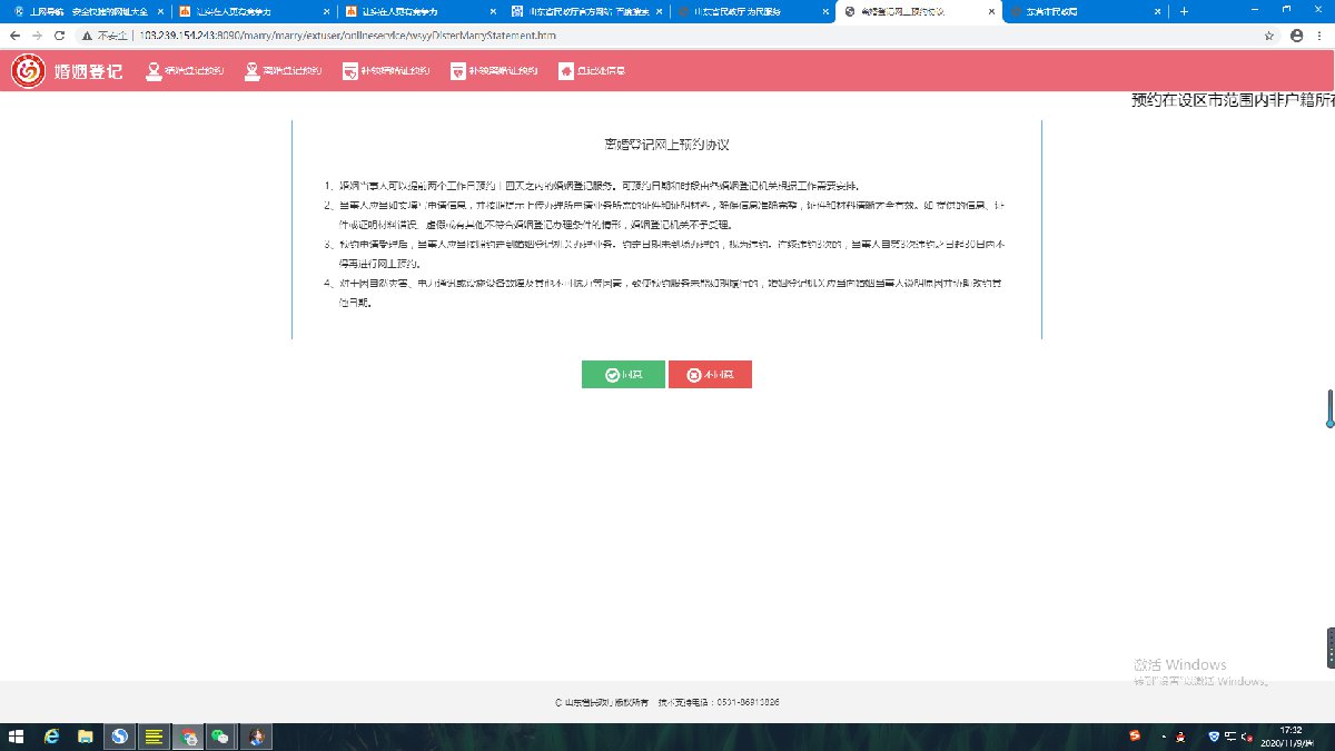 4、查看清楚预约协议后,点击同意,进入信息页面,完成信息填报。