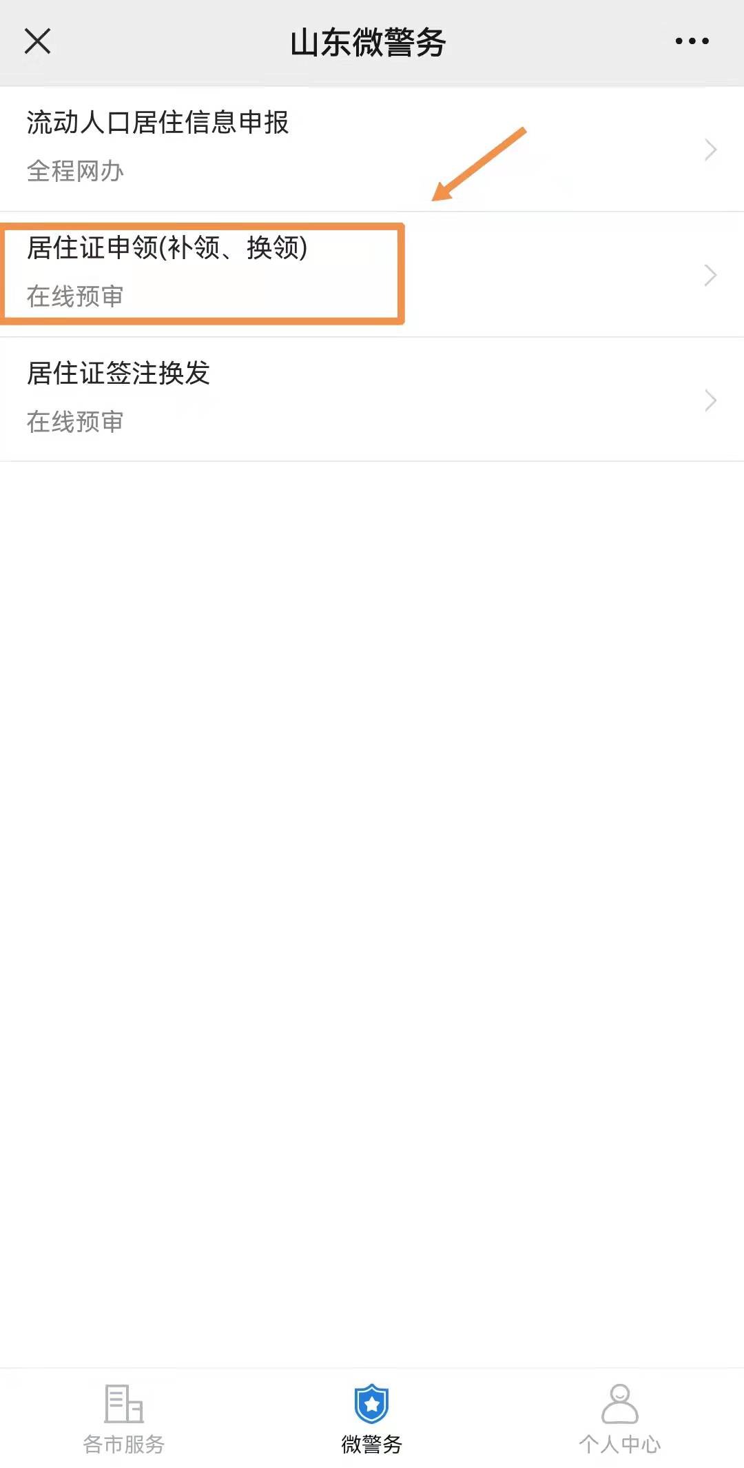 2)在手机端搜索关注山东微警务微信公众号,点击“户籍业务”,点击居住证申领(补领、换领),填写相关材料,即可办理居住证补换领业务。