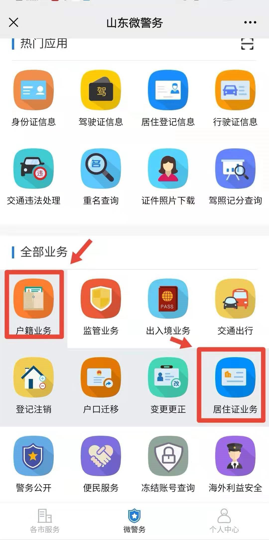 2)在手机端搜索关注山东微警务微信公众号,点击“户籍业务”,点击居住证申领(补领、换领),填写相关材料,即可办理居住证补换领业务。