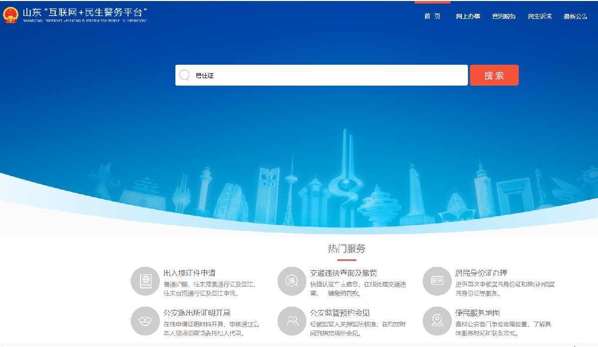 1、在互联网端搜索登录山东“互联网+民生警务平台”,搜索“居住证”,即可网上申报。