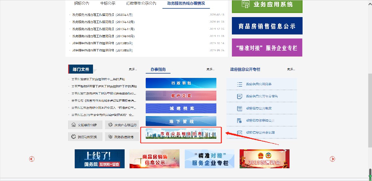 1、申请人可通过登录东营市住房和城乡建设管理局官方网站,进入“市直公共租赁住房”模块;
