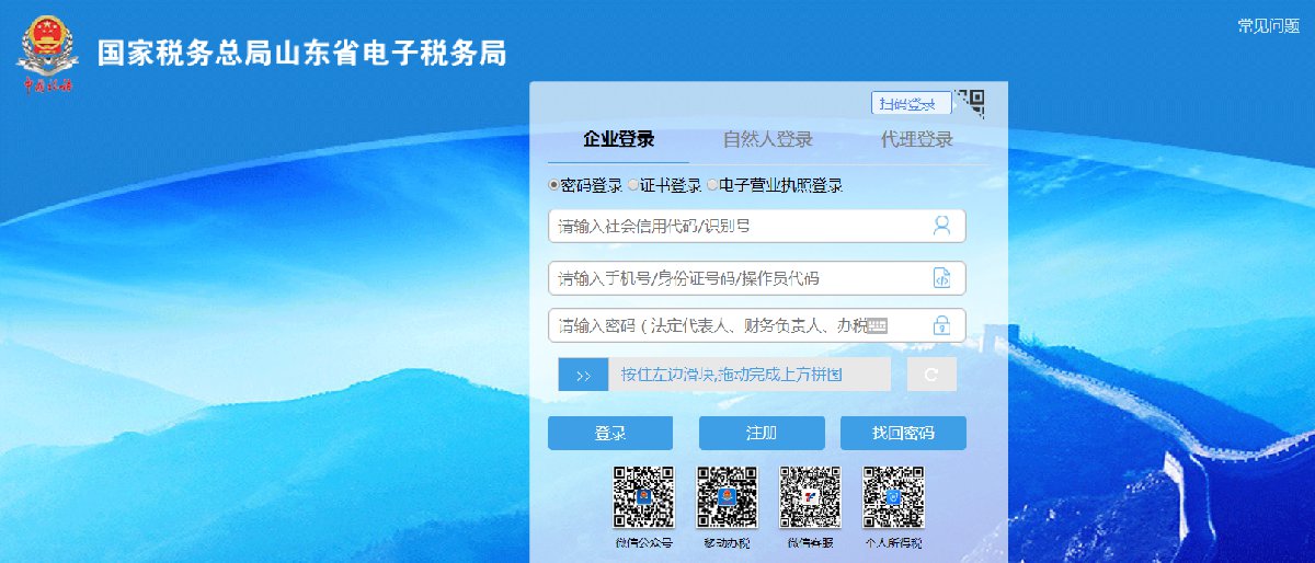 1、登陆山东省电子税务局选择自然人注册缴费;详情可登陆国家税务总局东营市税务局网页(http://shandong.chinatax.gov.cn/col/col43/index.html)查询。