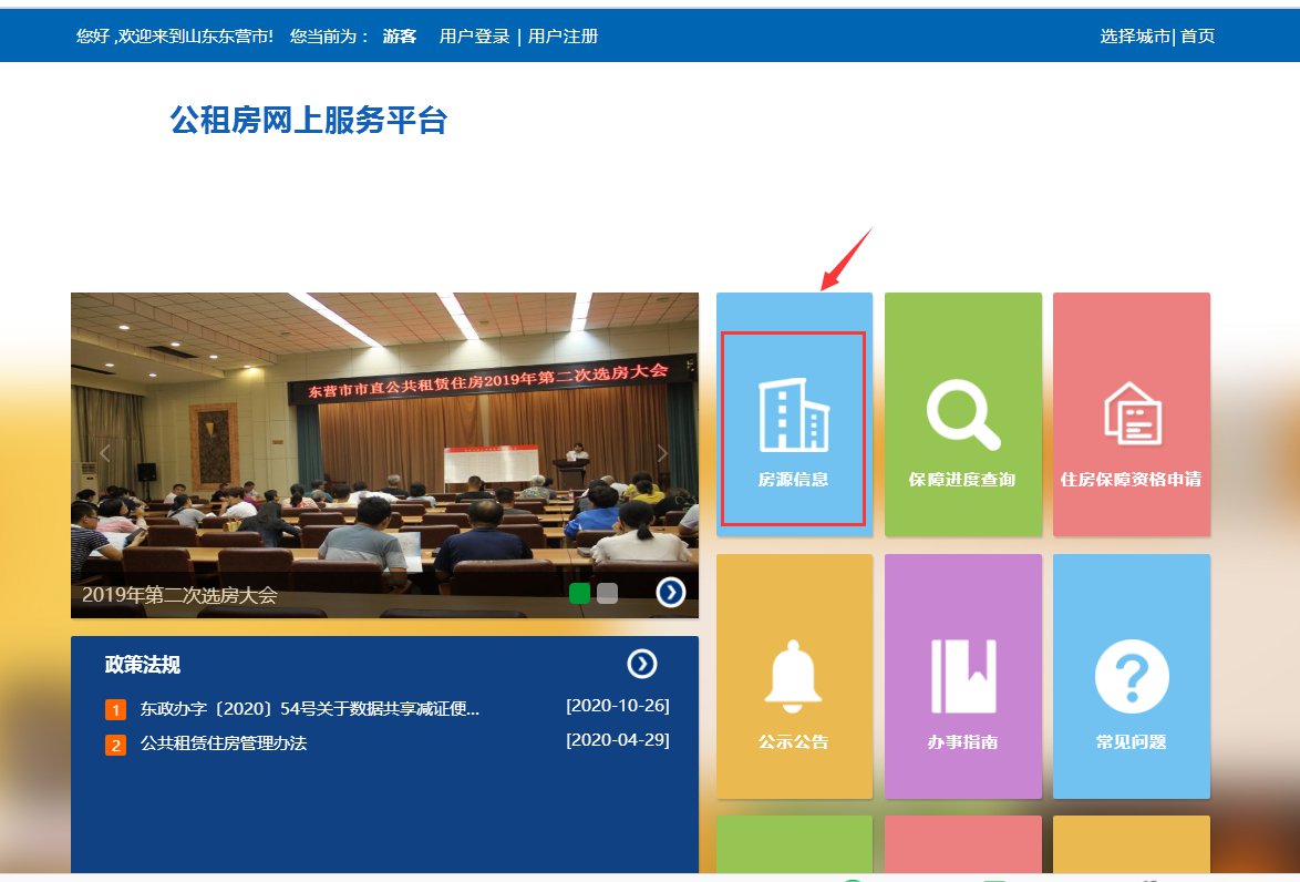 第二步:选择“房源信息”,即可查看东营各区县公租房房源信息情况