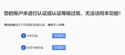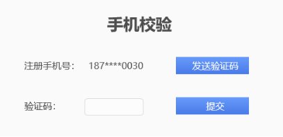 4、登录成功后,若出现以下界面,请点击手机校验右侧的“点击进入”——点击“发送验证码”——输入验证码——点击“提交”——点击“确定”,提示认证成功。