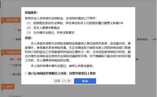 5、仔细阅读此页面提示内容(“申领条件”、“承诺”),符合申领条件点击“我已认真阅读……”——最后点击“同意”;