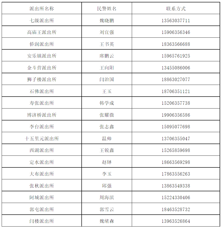 派出所联系方式: