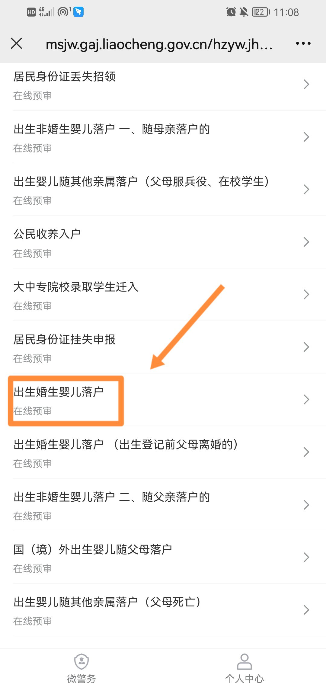 4、进入页面,选择办理业务【出生婚生婴儿落户】