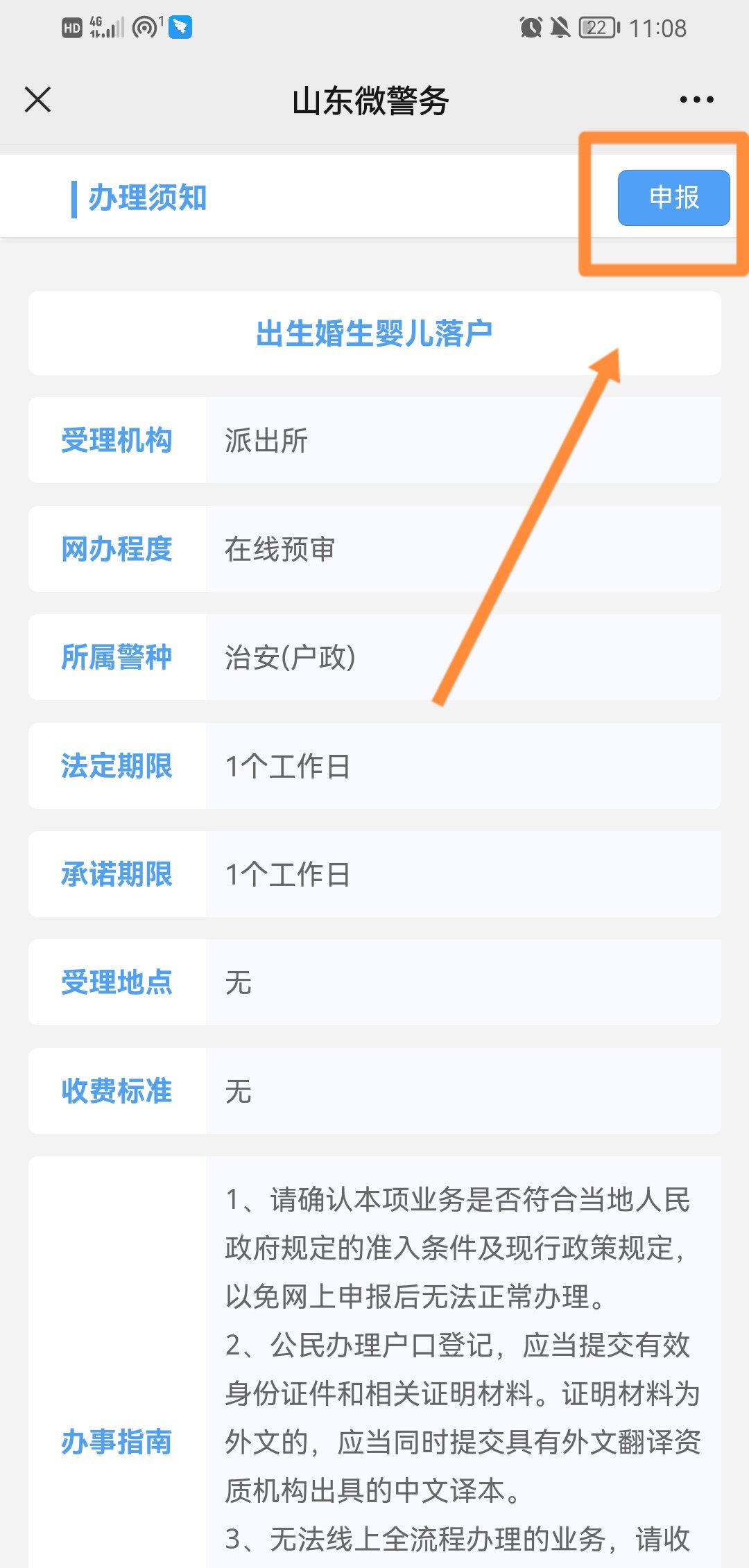 5、查看注意事项,点击【申报】,登录页面,填写相关信息及上传附件