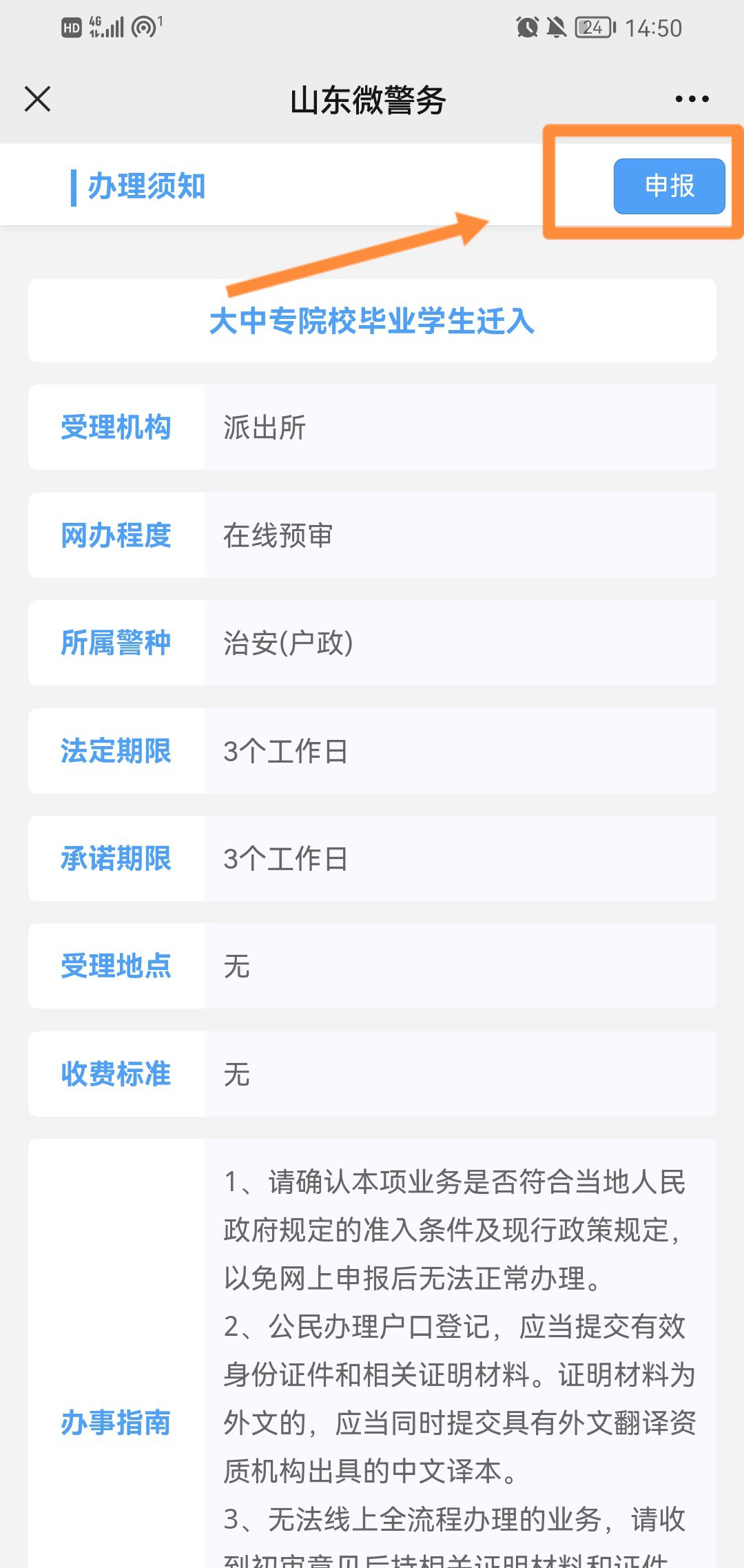 5、查看注意事项,点击【申报】,登录页面,填写相关信息及上传附件
