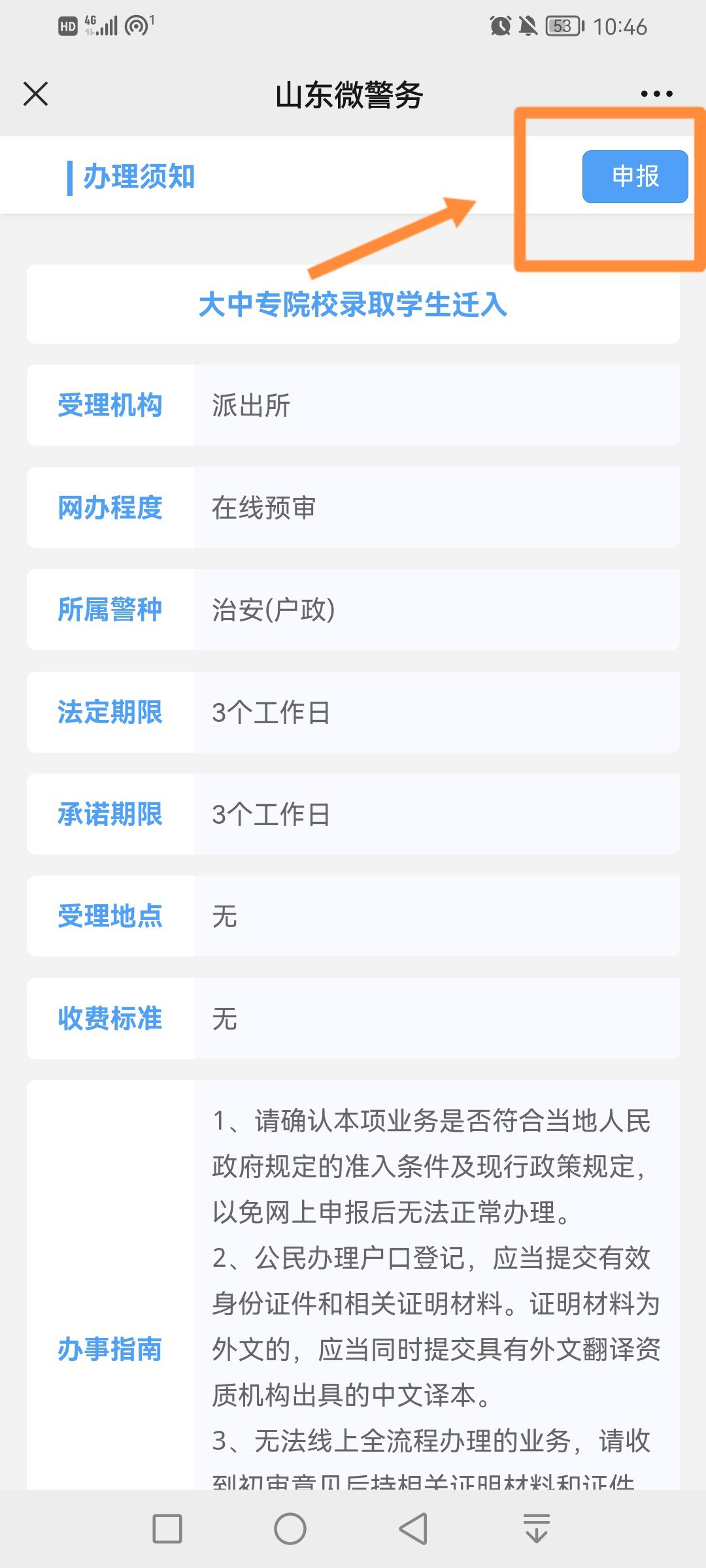 5、查看注意事项,点击【申报】,填写身份信息,完成实名认证