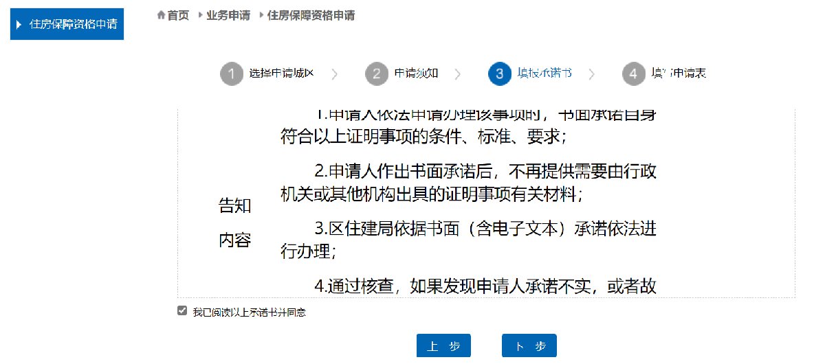 进入“申请须知”页面,阅读申请须知,完毕后勾选“我已阅读以上申请须知”,点击“下一步”