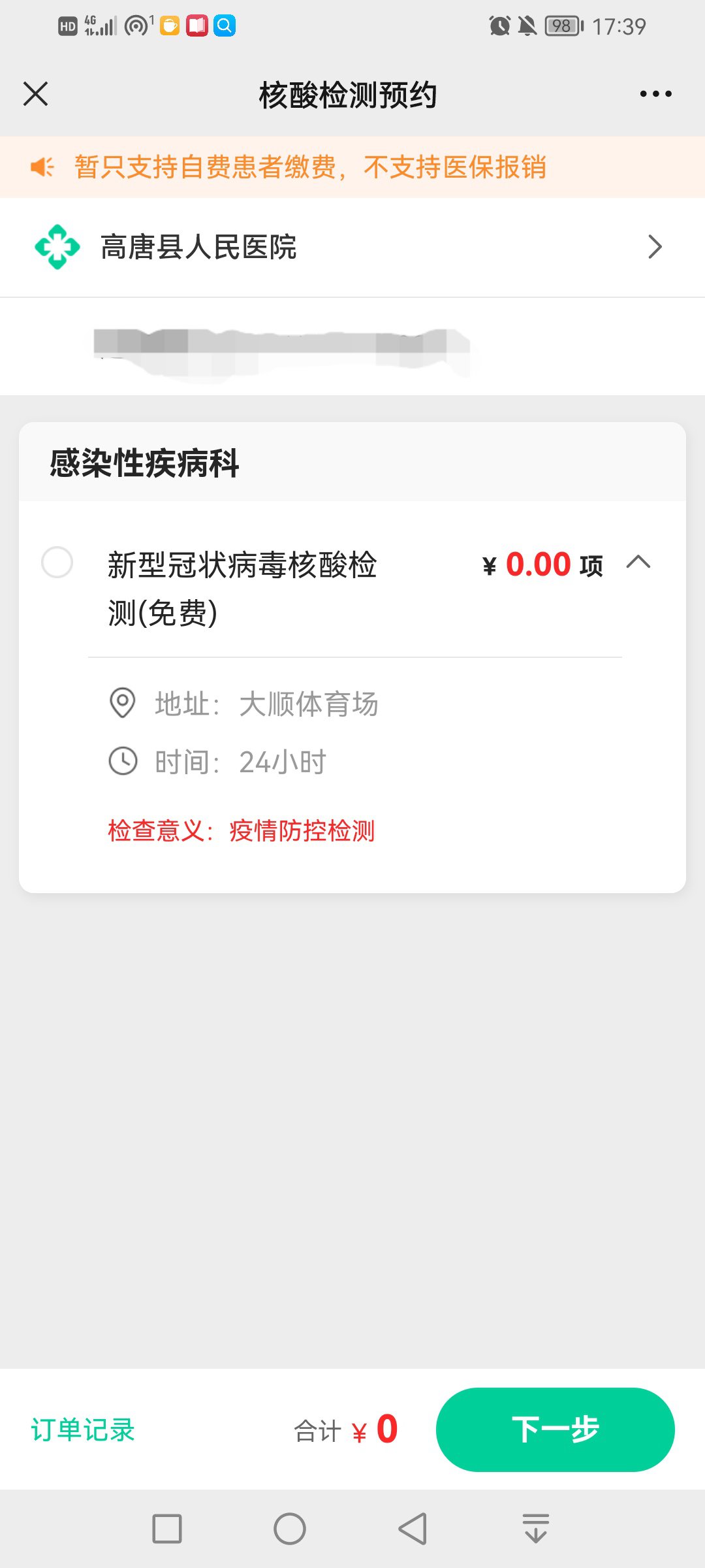 聊城高唐县人民医院核酸检测信息如下: