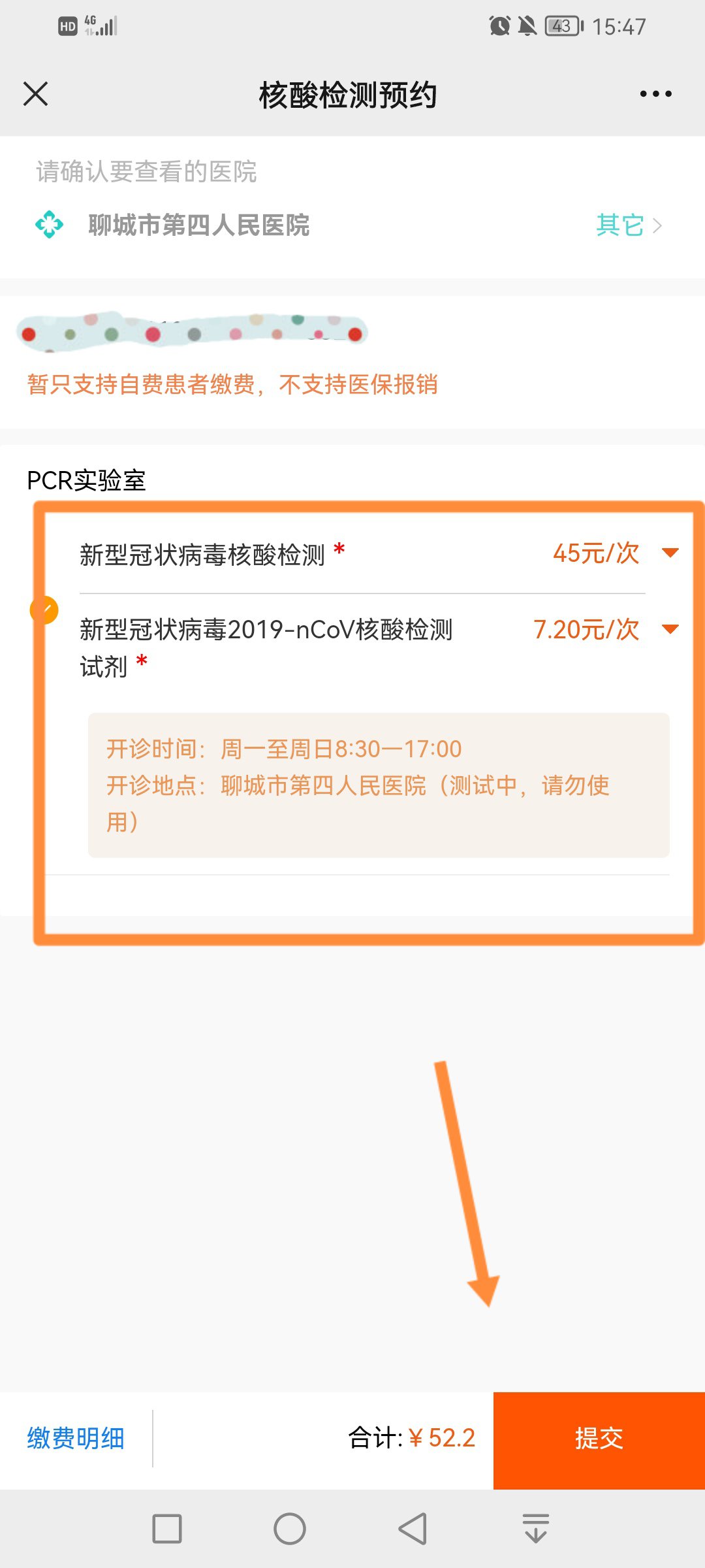 登录健康聊城微信公众号核酸检测预约功能选择我院进行网上预约,预约完成后到我院核酸采集处出示预约二维码进行采集。