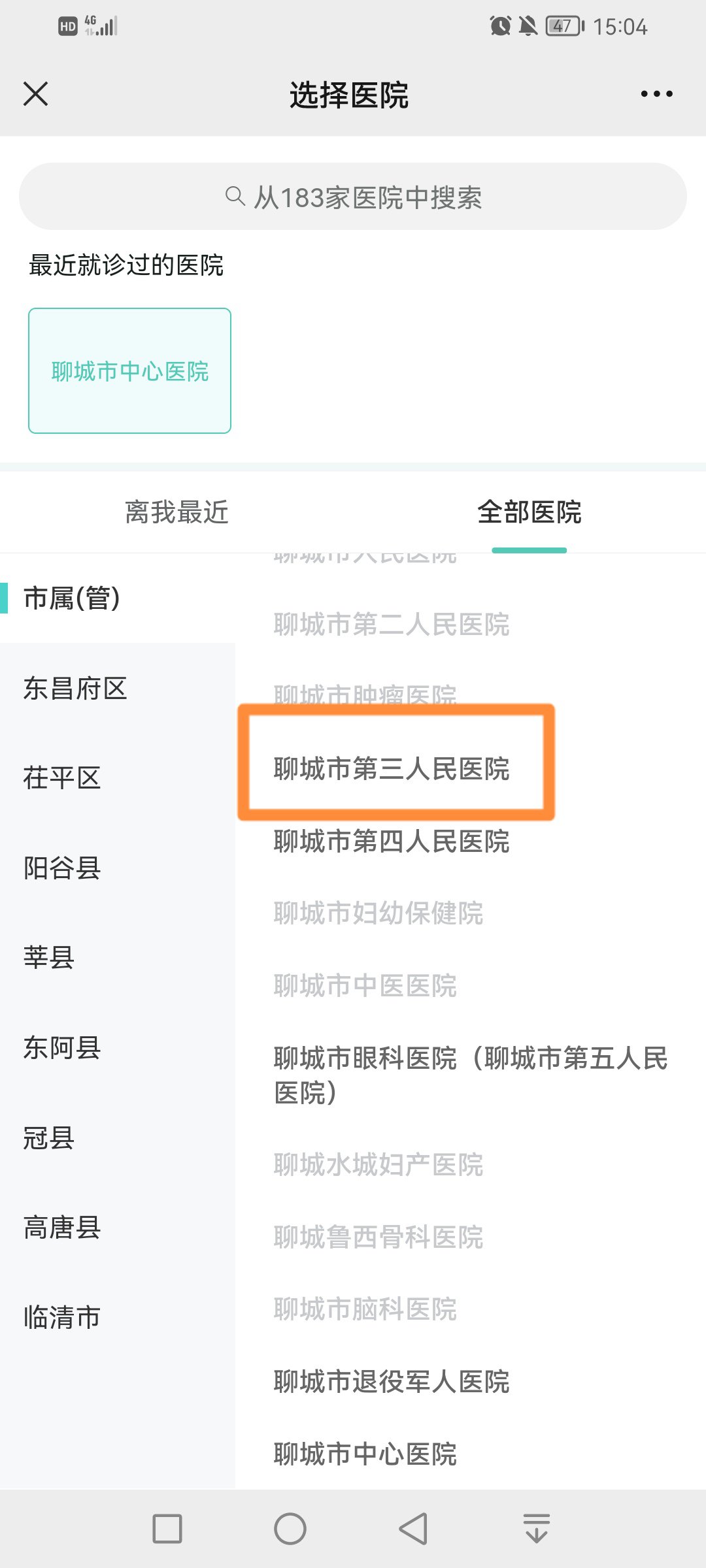 4、点击【市属(管)】选择【聊城市第三人民医院】