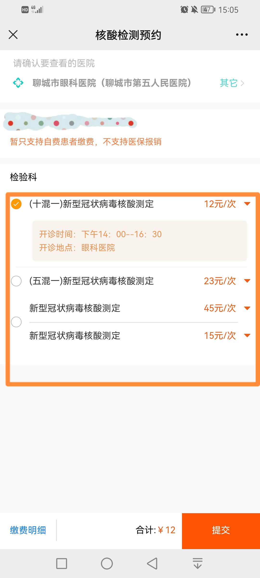 5、进入页面后会出现三种检测选项,依据自身情况选择,点击项目付费即可。